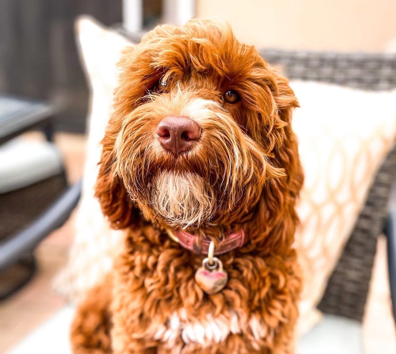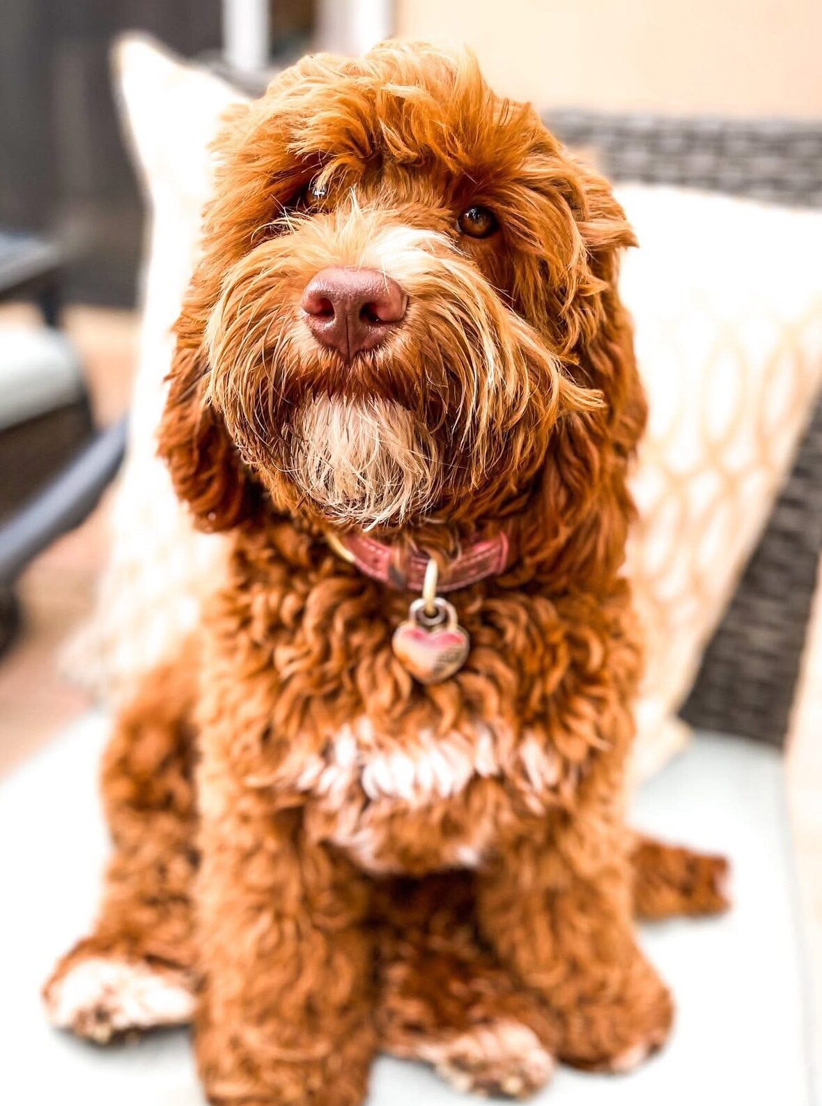 Indy is a red colored small medium sized Australian labradoodle at 25 pounds and 17 inches at the shoulder. Indy has been cleared OFA hips and elbows, eyes, and full Pawprint Panel for genetic diseases. Indy lives in a Guardian Home in San Luis Obispo, CA.
