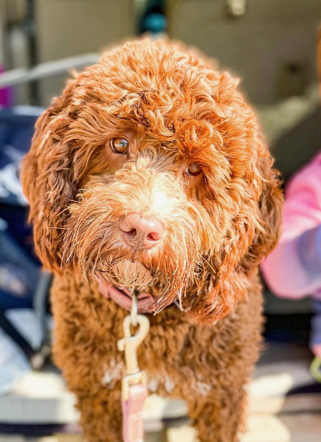Daisy is a red colored medium sized Australian labradoodle at 35 pounds and 19 inches at the shoulder. Daisy has been cleared OFA hips and elbows, eyes, and full Pawprint Panel for genetic diseases. Daisy lives in a Guardian Home in Paso Robles, CA.